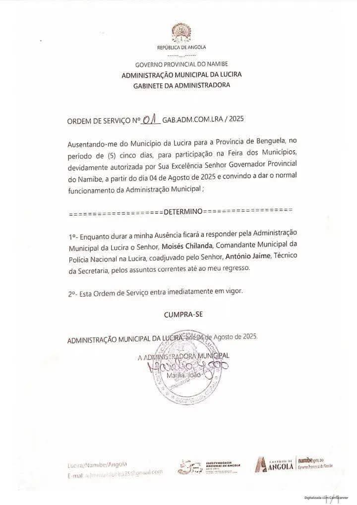 A recente designação do Comandante Municipal da Polícia Nacional, Moisés Chilanda, para responder pela Administração Municipal da Lucira durante a ausência da Administradora Municipal, Marília João, é um claro exemplo da concentração de poder nas mãos de uma pessoa ou grupo.